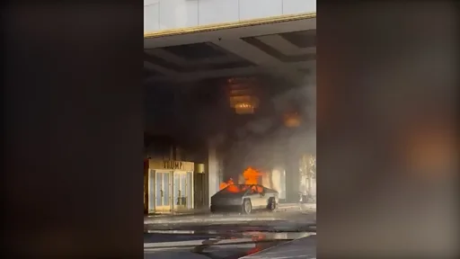 Tesla Cybertruck wit fuel and fireworks explode for Trump Las Vegas hotel