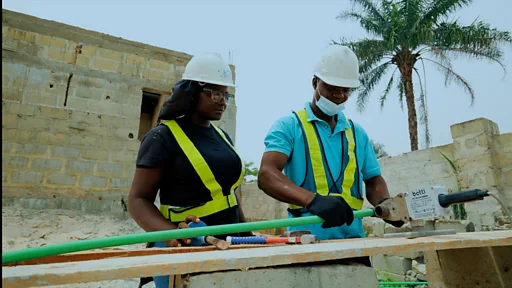 Although plumbing mainly na man work for dis part of di world, Blessing no allow dat one stop her as she volunteer to learn di work from her husband to fit dey help am for site.