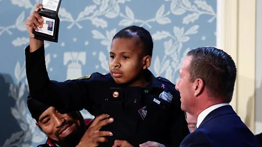 Inside one of di most viral moments of di night, Trump offer a surprise to one child diagnosed with brain cancer wey di president say dey aspire to become a policeman.