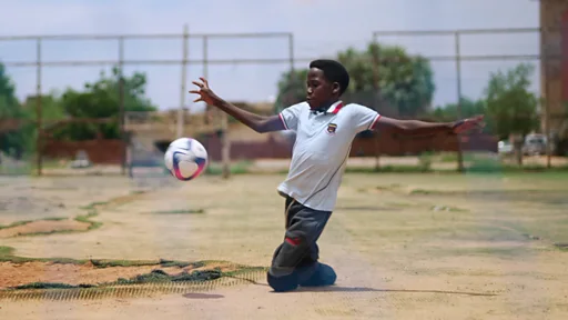 For one rough football field, Zaher dey drag imself for ground wit im knees, just bicos e wan play di game wey e love pass. Im friends dey shout and dey hail am as e kick di ball.