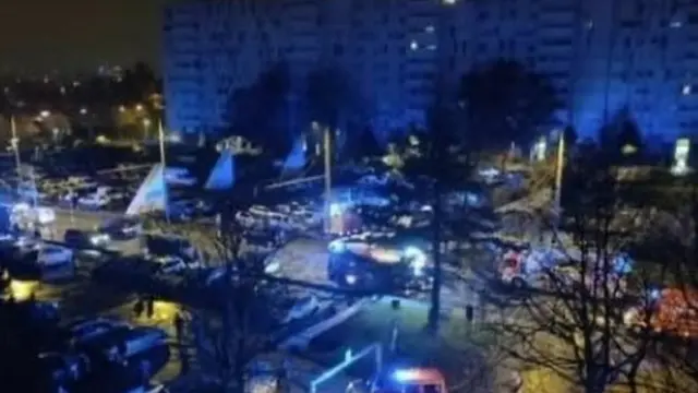 Officials release one statement saying a "sizeable fire" break out for one seven-storey block of flats in Vaulx-en-Velin.