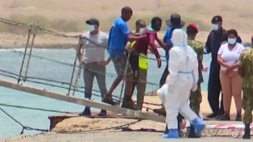 Authorities say dem rescue Thirty-eight pipo, including children, video show as dem help some pipo come land, some on dem bin dey for stretcher, for island of Sal.