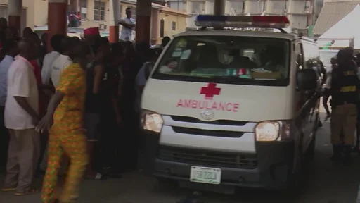 Some parents dey dia dey roll for ground as dem some deadi bodi dem wey ambulance carry come.