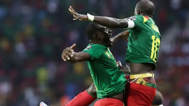 Im bin score two goals for Cameroon first match wit Burkina Faso on Monday wia di Indomitable Lions win 2-1.
