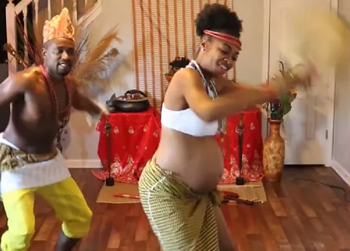 Di professional drummer wey im wife be singer say: "we bin wan make pregnancy video wey go show our culture; African dance na something wey we dey enjoy, because we don dey perform since we bi pickin sef."