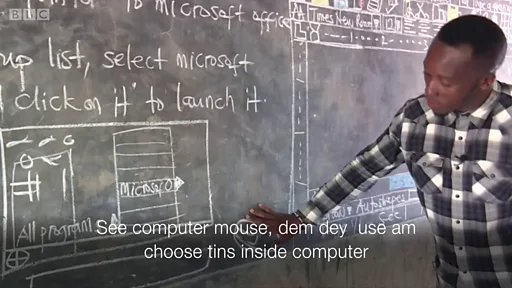 Kumasi man Richard Appiah Akoto, dey draw correct computer foto give im students as e no get real computer to use teach dem.