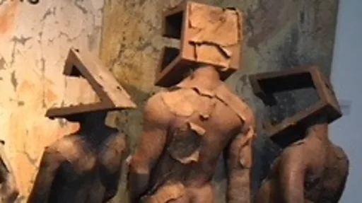 Na so award winning artist, architect and writer Peju Alatise take mark her 20 years wey she don dey do art for di ‘Paradox, Paradigms and Parasites’ exhibition.