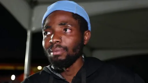 With pipo dia big big heaps for cargo on top bed, around e, Georgie Ndab wan komot for de only migrant centre for Tunisia 'fall bush' with e pikin.