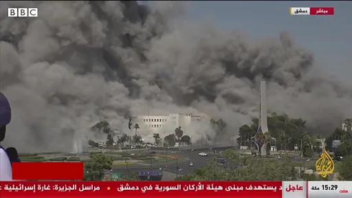 Atak na syryjskie dowództwo wojskowe był transmitowany na żywo przez wiodący syryjski kanał telewizyjny Syria TV ze studia znajdującego się naprzeciwko budynku – prezenter został uchwycony w trakcie ucieczki ze studia.