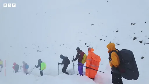 Inna kobieta powiedziała BBC, że jej mąż, który utknął w burzy śnieżnej, powoli schodzi z gór, ale gruba pokrywa śnieżna bardzo utrudnia mu odwrót.