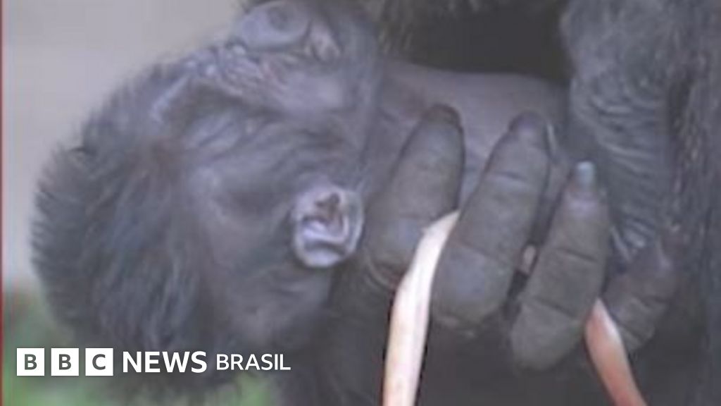 O animal é da espécie gorila-da-planície-ocidental, criticamente ameaçada, segundo a organização conservacionista IUCN.