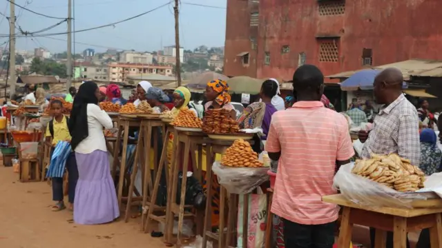 No mercado Mvog-mbi, um dos centros comerciais mais importantes da capital camaronesa, a economia está desacelerada.