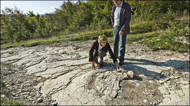 As bordas das pegadas têm um sedimento calcáreo, que data do período Jurássico (há cerca de 150 milhões de anos), quando a região era coberta por um mar morno e raso.