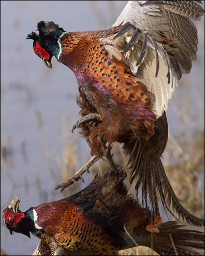 A foto de dois faisões brigando, de Richard Bedford, foi a vencedora do concurso Foto do Ano 2009, promovido anualmente pela revista britânica BirdGuides.