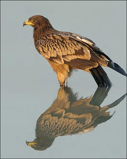 A foto da águia gritadeira, de Dileep Kumar, foi tirada no Catar. A tranquilidade do lago revela um momento de reflexão. A revista, normalmente, mostra aves encontradas na Grã-Bretanha.