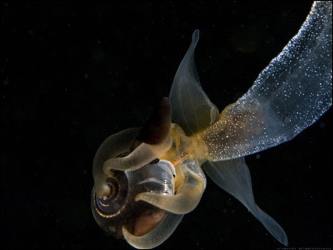 As borboletas-do-mar, porém, aparecem apenas durante um curto período de tempo e não se sabe como os anjos-do-mar se alimentam quando os pequenos moluscos não estão por perto.
