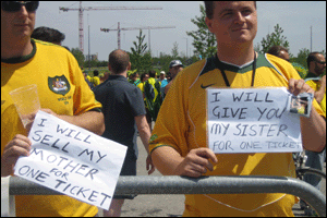 Uma das frases mais lidas em Berlim, principalmente em frente ao hotel onde estava hospedada a seleção brasileira, como nas proximidades do estádio: "Preciso de ingressos", em inglês, alemão e português, para o maior número de potenciais vendedores entender. Os preços variavam entre 1.000 e 250 euros. O mais barato era só para os mais pacientes: esperaram até 15 minutos antes do jogo para negociar com desesperados que não tinham conseguido vender os bilhetes por mais do que isso. Mas a maioria dos que procuraram acabou mesmo do lado de fora do estádio. Foram todos para a Waldbühne, um teatro no meio de um parque, bem próximo ao Olympia Stadion, onde a cantora Ivete Sangalo consolou o "movimento dos sem-ingressos".