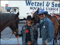A estimativa deles é realizar quase 500 mil ligações até a votação desta terça-feira, na Califórnia. Hillary a cavalo Stephen Phul (à direita) e Joni Berby são moradores de Los Angeles que optaram por unir duas de suas paixões.