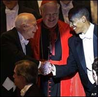 Além de aconchegante, no Ben’s reside um importante – e não muito bonito - capítulo da história da cidade e dos Estados Unidos. O Ben’s foi fundado em 1958, uma época em que Washington, cuja população é predominantemente negra, ainda era uma cidade oficialmente segregada. O Ben’s fica em uma das mais divertidas e animadas ruas de Washington, a U Street, farta em casas de jazz e, atualmente, diversos restaurantes etíopes. A lanchonete ocupa um trecho que era conhecido como a Broadway negra, dada o grande número de casas de espetáculos povoadas por renomados artistas de jazz, como o Lincoln Theatre, situado ao lado. Há poucos metros do Ben’s, há, inclusive, um gigantesco mural estampado com o rosto de Duke Ellington. Em 1968, as imediações do Ben’s foram completamente destruídas por negros revoltados com o assassinato de Martin Luther King. As autoridades decretaram um toque de recolher, mas Ben Ali, o dono do imóvel, obteve uma permissão para permancer aberto, mesmo altas horas da noite. E talvez tenha nascido ali o ecletismo do Bens’s, que começou a abrigar tanto policiais e bombeiros, como ativistas do movimento Panteras Negras. Ontem, foi a vez de o primeiro afro-americano a ser eleito presidente dos Estados Unidos dar o ar de sua graça na casa. Acompanhado do prefeito Adrian Fenty, Barack Obama fez a pedida certa – um half smoke dog com chilli e cheese fries, talvez a melhor opção do cardápio. Conforme evidenciaram os videastas de plantão, Obama pagrou pelo pedido e, como convém aos frequentadores que honram as mesas do Ben’s, deu gorjeta. Claro, nem poderia ser de outra maneira, afinal, a única pessoa que vai ao Ben’s e come fiado é, como atesta uma placa na parede, o humorista Bill Cosby. Se Obama quer mesmo marcar uma nova era na Casa Branca, ele já começou no lugar certo. Muito melhor que os debates Um total de 60 milhões de americanos sintonizou as suas TVs na última quarta-feira para assistir a John McCain e Barack Obama. Mas o que eles não sabiam é que eles estavam ligando seus televisores no dia e no horário errado. O programa que eles prefeririam ter visto era o jantar anual da ONG católica Alfred E. Smith Memorial Foundation, uma entidade que carrega o nome de um ex-governador de Nova York morto em 1944. Desde 1960, quase todos os candidatos presidenciais realizaram bem-humorados discursos nos jantares promovidos pela entidade, que reúnem políticos e a elite econômica americana. No jantar deste ano, foi a vez de Barack Obama e John McCain subirem ao palco e aproveitarem a ocasião por, durante cerca de 15 minutos, honrarem a tradição americana de fazerem piadas um sobre o outro e, melhor ainda, divertirem os presentes com diversas tiradas autodepreciativas.