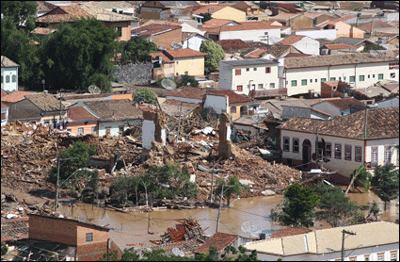 A Igreja Matriz, construída no século XIX, ruiu com a força da água. O prédio deve ser reconstruído, segundo o governador José Serra, que visitou a cidade na última quarta-feira.
