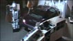 Um carro entrou pela porta de trás de uma sex shop, quebrando os vidros, pouco antes das seis da manhã.