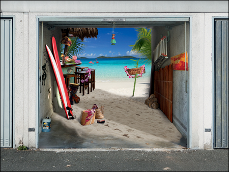 A empresa style-your-garage.com oferece imagens que vão desde temas da natureza, como praias ou cavalos, até "objetos de desejo" mais consumistas, como lanchas, motos clássicas e carros de corrida.