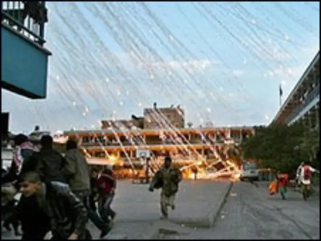 Depois do cessar-fogo unilateral de Israel e da abertura das passagens de fronteira para alguns jornalistas internacionais, fotografias e imagens em vídeo foram divulgadas mostrando o que parecia ser pedaços de fósforo branco queimando, que pareciam ter caído em áreas habitadas.