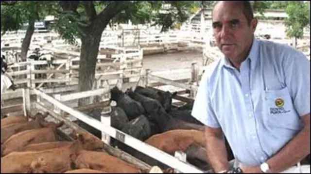 Carlos Pujol (acima) comercia gado no Mercado de Liniers, em Buenos Aires. Ele compra os animais dos produtores e os vende para as fábricas de processamento de carne.