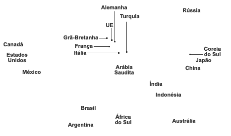 Arábia Saudita | África do Sul | Coreia do Sul | Turquia | Grã-Bretanha | Estados Unidos | União Europeia