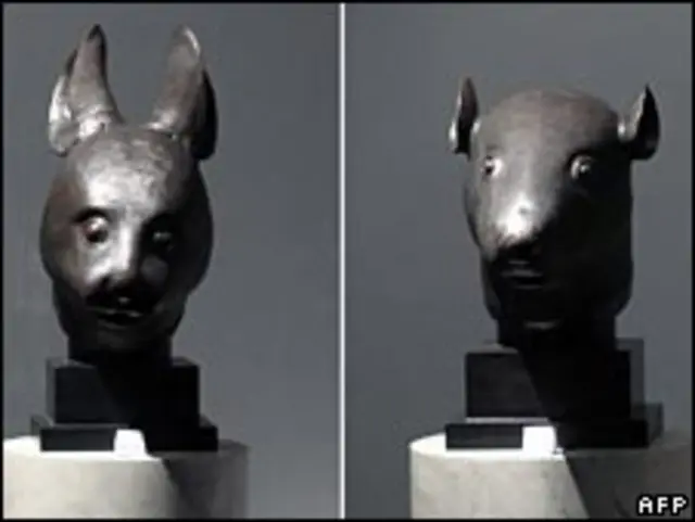 As peças - uma cabeça de coelho e uma cabeça de rato - pertenciam à coleção particular do estilista francês Yves Saint-Laurent e de seu companheiro, o empresário Pierre Bergé.