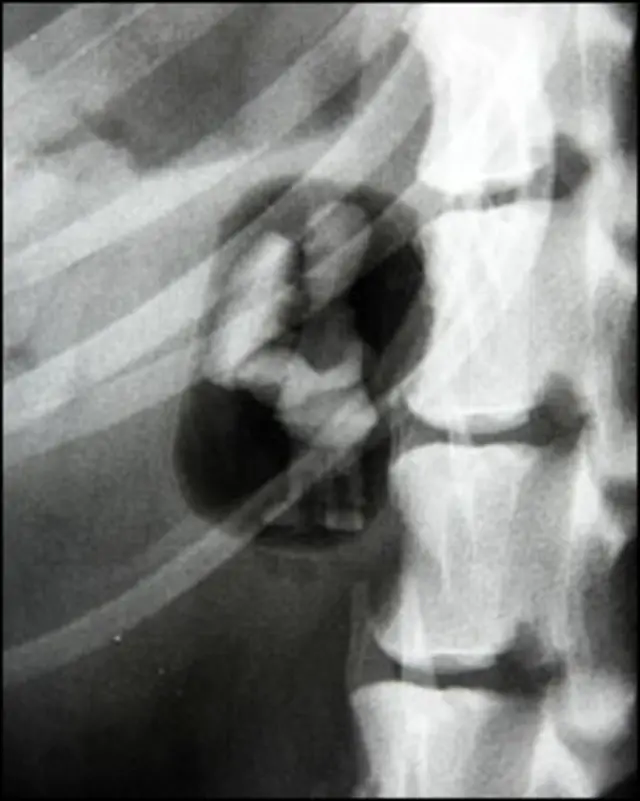 Os veterinários suspeitavam que havia um corpo estranho dentro de Dixie e isto foi confirmado com exames que mostraram um objeto estranho que acabou sendo retirado do intestino.