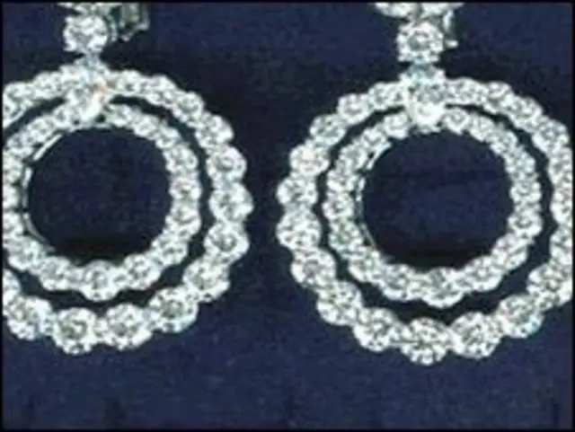 Entre os 43 objetos roubados da joalheria estava um par de brincos de diamantes com argolas duplas, um colar com uma flor de diamante amarelo e um anel de diamante, além de um valioso relógio masculino.