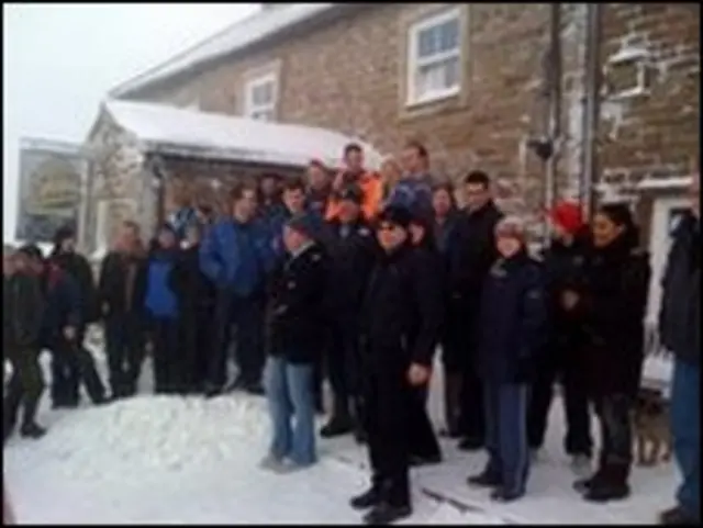 Neste domingo, algumas pessoas começaram a deixar o "pub", depois que alguns tratores e caminhões de gelo retiraram a neve das estradas da região.