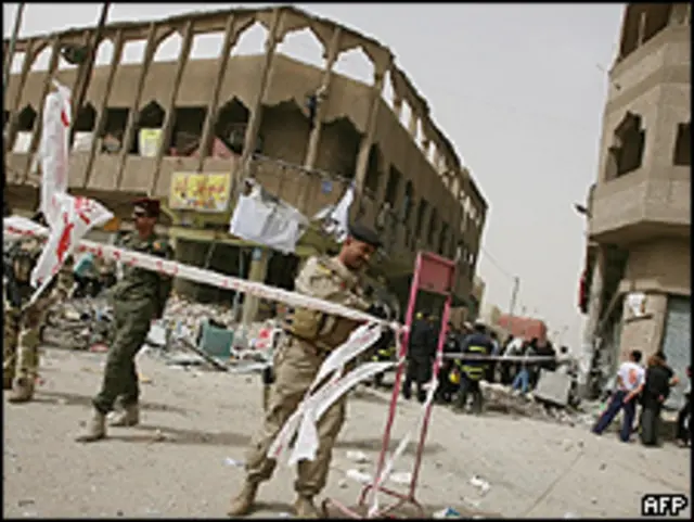 No primeiro atentado desta quinta-feira, uma explosão atingiu um mercado movimentado.