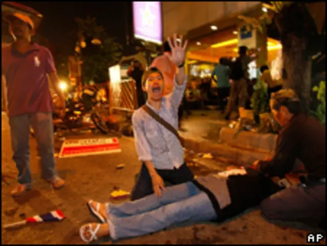 Nesta quinta-feira, uma série de explosões aparentemente coordenadas deixou dezenas de feridos no centro de Bangcoc, onde estão acampados os manifestantes.