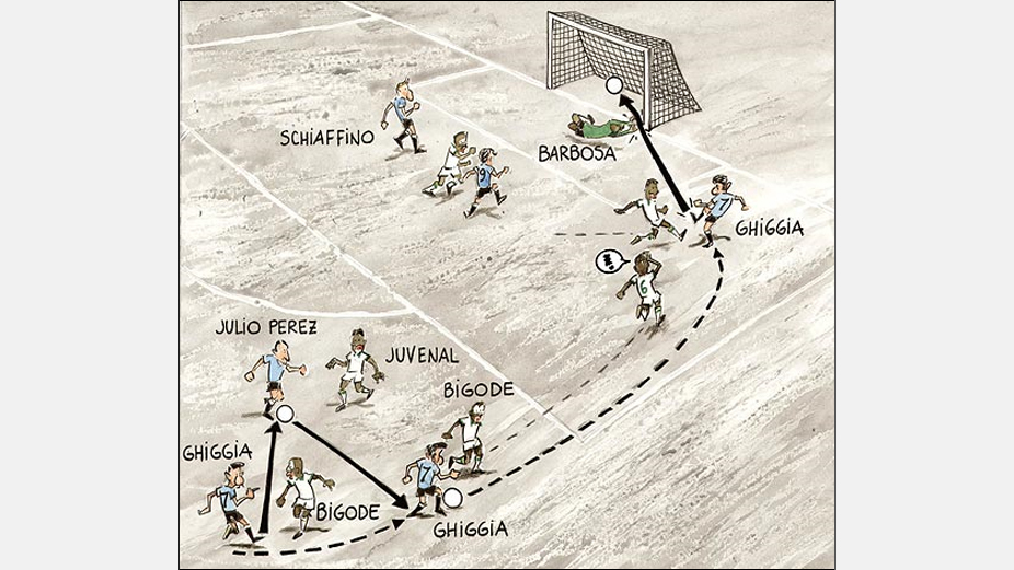 O livro Copa do Mundo 1930 – 2006, publicado na Grã-Bretanha pela editora Sports Books, traz alguns momentos marcantes como o gol de Ghiggia em 1950 que levou ao segundo título mundial uruguaio, conhecido por nós como a tragédia do Maracanã.