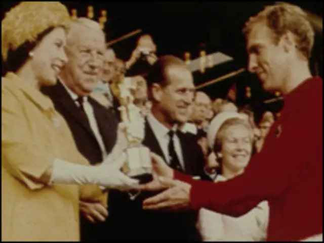 No estádio de Wembley, o capitão do time inglês, Bobby Moore, recebeu a taça Jules Rimet das mãos da rainha Elizabeth II.