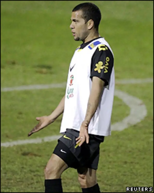 Daniel Alves é um dos jogadores que vem mostrando maior ímpeto nos treinos. No treinamento desta sexta-feira, ele recebeu elogios de Dunga em um lance no qual driblou três jogadores adversários.