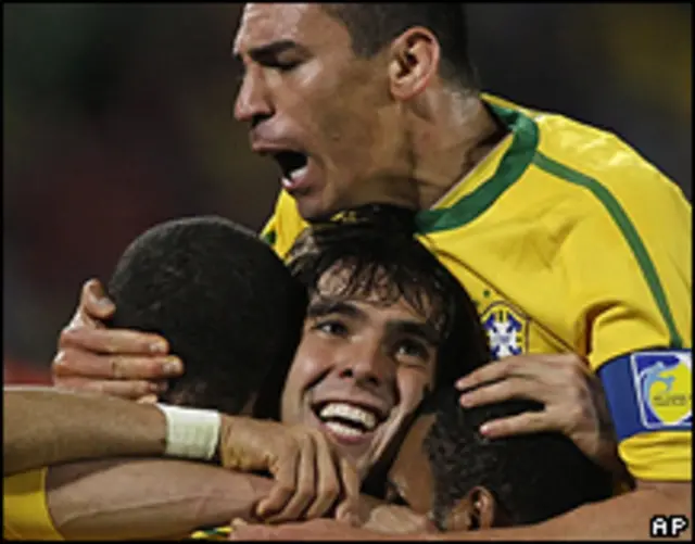 O Brasil também teve uma escalação voltada para o ataque. Robinho e Kaká voltaram à equipe e o volante Felipe Melo, contundido, foi substituído por Ramires.