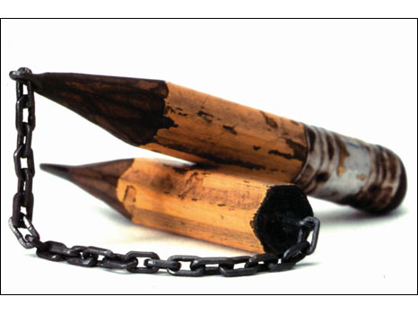 Em outras ocasiões, ele esculpiu ferramentas de seu dia-a-dia, como serras e um martelo. Na série Correntes, ele esculpiu o grafite do meio do lápis, unindo as duas pontas.