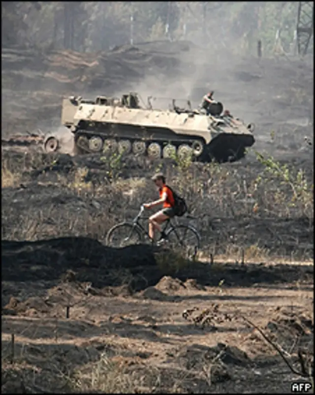 A 400 quilômetros a leste da capital, bombeiros continuam combatendo o incêndio nas proximidades do centro nuclear de Sarov.