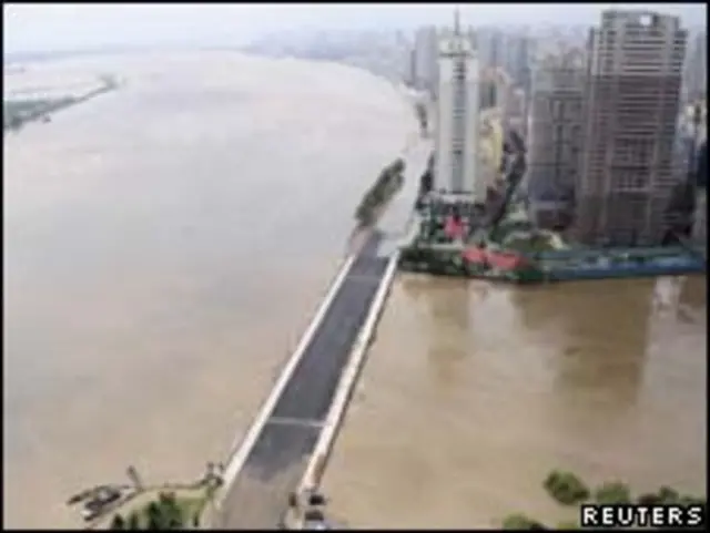 Em Dandong, a água do rio Yalu rompeu um dique, inundando uma área industrial da cidade. Segundo informações, a principal ferrovia da região também teria sido interditada.
