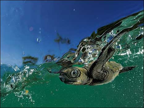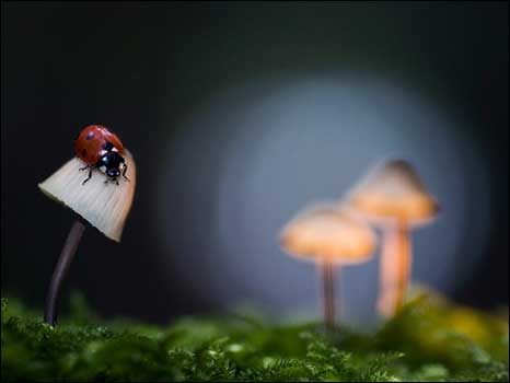 Um guepardo caçando após um incêndio, uma tartaruga surfando numa onda e uma joaninha se equilibrando sobre um cogumelo são algumas das fotos escolhidas pelo concurso de fotografias GDT European Wildlife Photographer 2010.