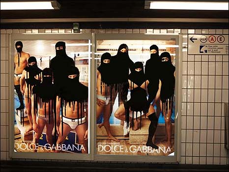 Um artista grafiteiro intriga os parisienses desde 2006, pintando, às escondidas, véus sobre personagens de painéis publicitários no metrô da capital francesa.