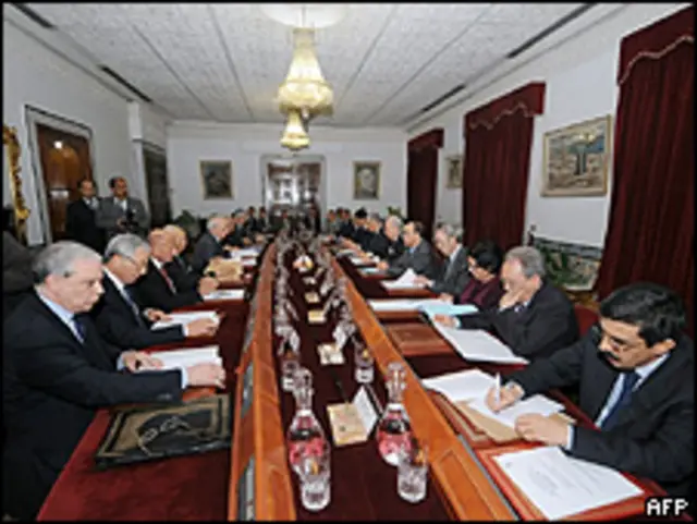 A reunião tinha sido adiada em meio aos pedidos da oposição de que não fossem destinados cargos importantes no governo interino a integrantes do partido de Ben Ali, o RCD.