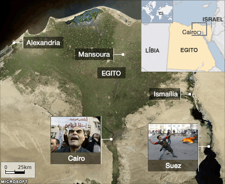 As manifestações no Egito foram inspiradas pelos protestos populares na Tunísia que levaram à derrubada do presidente Zine al-Abidine Ben Ali, há duas semanas.