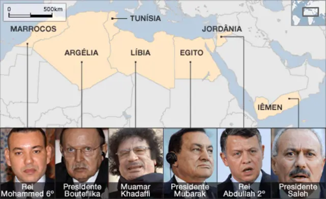 Em vários países do Oriente Médio ou do norte da África, populações jovens - que aumentam cada vez mais - enfrentam problemas como o aumento dos preços do alimentos, altos índices de desemprego e falta de representação política. Alguns países são liderados por autocratas envelhecidos que também enfrentam problemas de sucessão.