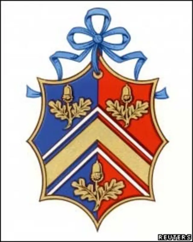 O brasão tem três ramos de carvalho, um para cada filho dos Middleton - uma ideia dada pela própria Kate.