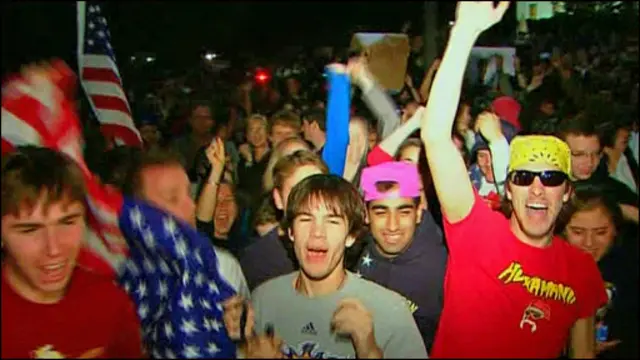 Muitos dos que foram para as ruas celebrar no domingo à noite eram jovens. O estudante Rashawn Davis, calouro da Universidade de Maryland, explicou que se sentia "em um mundo mais calmo agora que o homem se foi".