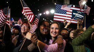 Multidão comemora reeleição de Obama